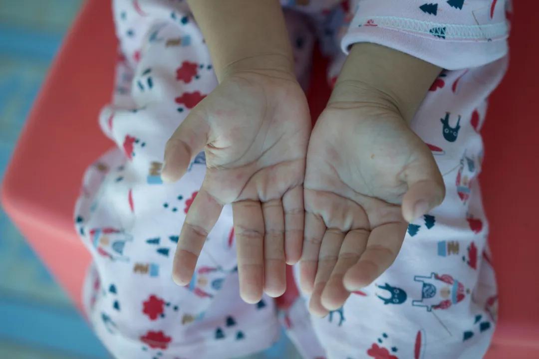 手足口病是由多种肠道病毒感染引起的儿童常见传染病,存在春夏季和秋季两个流行高峰;发病以5岁及以下儿童为主,托幼机构、学校等重点场所是聚集性疫情高发场所。主要通过消化道、呼吸道(飞沫、咳嗽、打喷嚏等)传播,亦可因接触患者口鼻分泌物、皮肤或黏膜疱疹液及被污染的手及物品等造成传播。临床以发热和手、口腔、足部等部位的皮疹或疱疹为主要特征,可伴有咳嗽、流涕、食欲不振等症状。